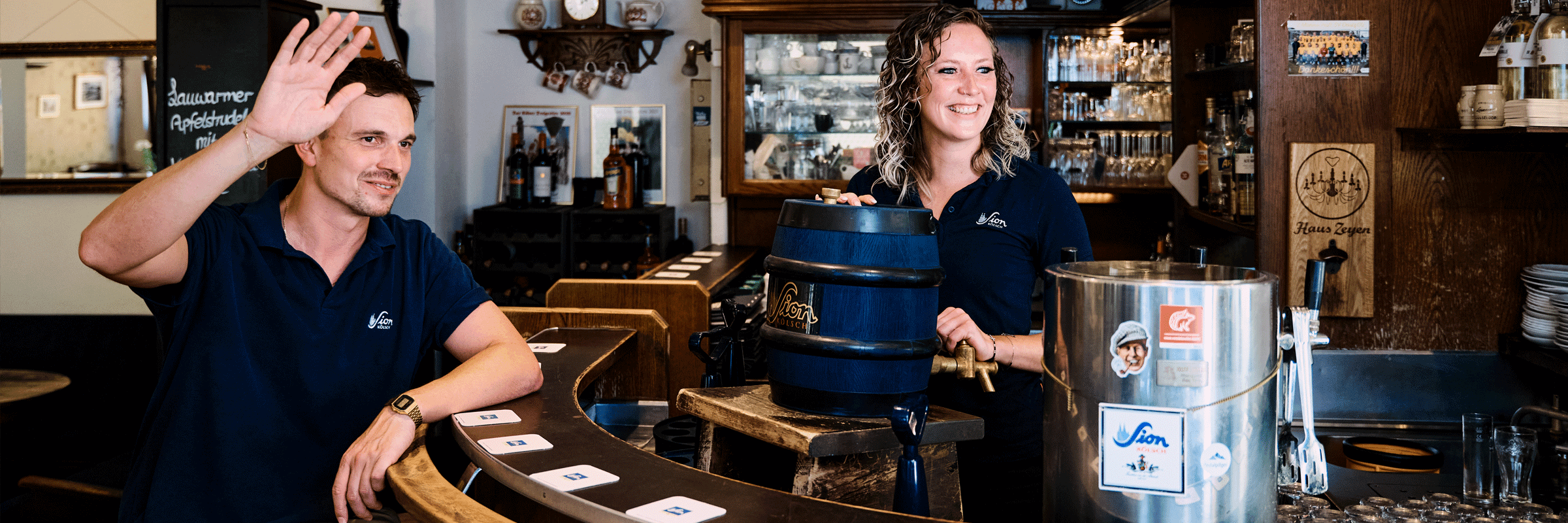 Bei uns gibt es gutbürgerliche Speisen, kühles Sion Kölsch vom Fass und natürlich unsere Spezialität: beste Steaks!
